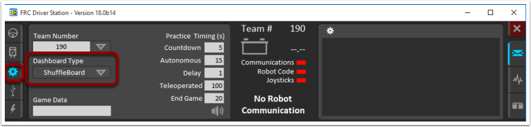 shuffleboardon Windows orpython shuffleboard.pyon macOS or Linux from~/WPILib/YYYY/toolsdirectory (where YYYY is the year and ~ isC:\Users\Publicon Windows). This is often easiest on a development system that doesn’t have the Driver Station installed.