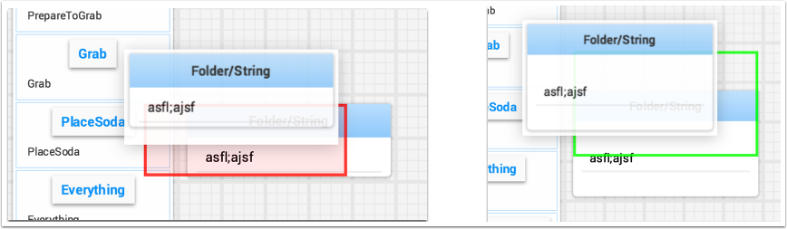 Widgets can be resized by clicking and dragging the edge or corner of the widget image. The cursor will change to a resize-cursor when it is in the right position to resize the widget. As with moving widgets, a green or red outline will be drawn indicating that the widget can be resized or not. The example below shows a widget being resized to a larger area with the green outline indicating that there is no overlap with surrounding widgets.